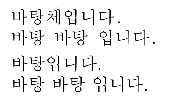 - 일정 간격 : D2Coding, 바탕체, 궁서체, 굴림체
